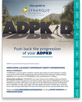 JYNARQUE is a prescription medicine used to slow kidney function decline in adults who are at risk for rapidly progressing autosomal dominant polycystic kidney disease (ADPKD). It is not known if JYNARQUE is safe and effective in children.